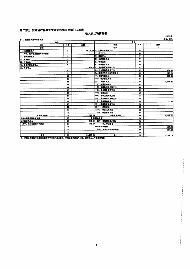 安徽省农垦事业管理局2018年部门决算情况