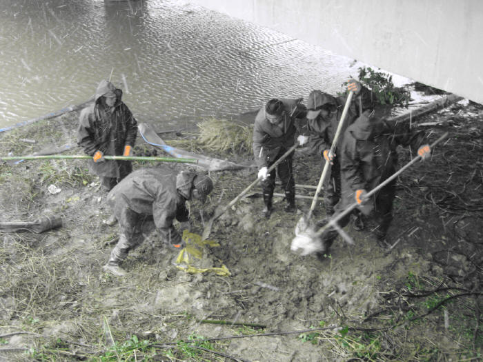 “同志们加油干哪,哎哟喂啊!这雪呀越下越大哪,哎哟哎呀!”这是11月16日,笔者在安徽农垦皖河农场土地复垦整理工地4标段听到的雪中劳动号子。当日,数十名施工人员在风雪中抢筑漕河围堰,与恶劣天气叫板。据了解,皖河农场土地复垦整理是中央财政投资的重点工程,总投资2600余万元,项目惠及农场及周边农村1万农民和农工,项目建成后,可提高2万多亩耕地的旱涝保收系数。为早日让这项民生工程发挥效益,皖河农场克服恶劣天气等不利因素,拉开了新一轮工程大会战。工地上天寒地冻,但劳动号子却让人感到热气腾腾。